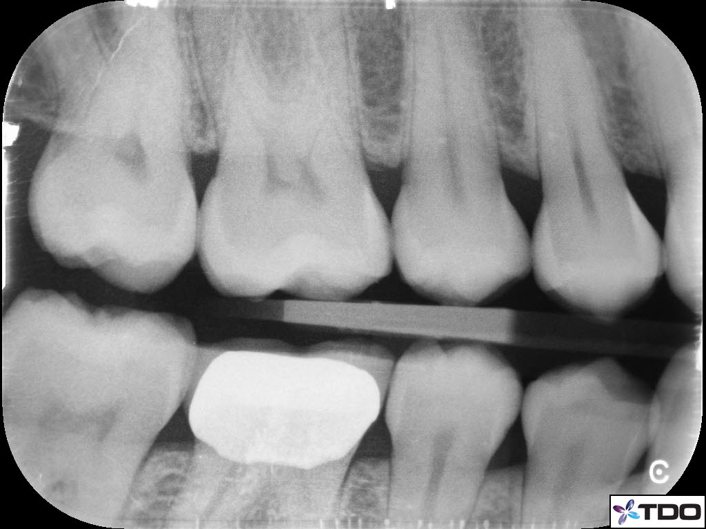 Hi Gergely. The crown was less than two weeks old when the patient was first seen in my office. The previous crown was 15 yrs old and was seldom sensitive; the RD replaced the crown due to an “open margin.” Heat/cold sensitivity ensued after the crown prep. Four days after the permanent crown was cemented the patient woke up with severe throbbing pain and the temp sensitivity became worse. When she presented to my office she reported severe biting tenderness and tender submandibular lymph nodes.
