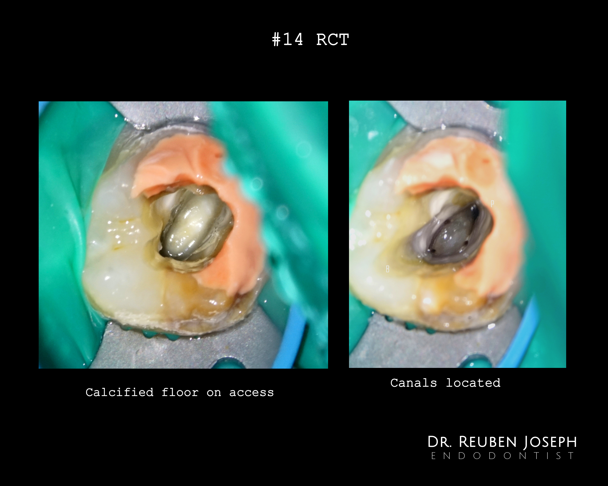 – On access the floor was completely calcified and appeared bleached and ovoid. Managed to localize all canals which were in eccentric locations