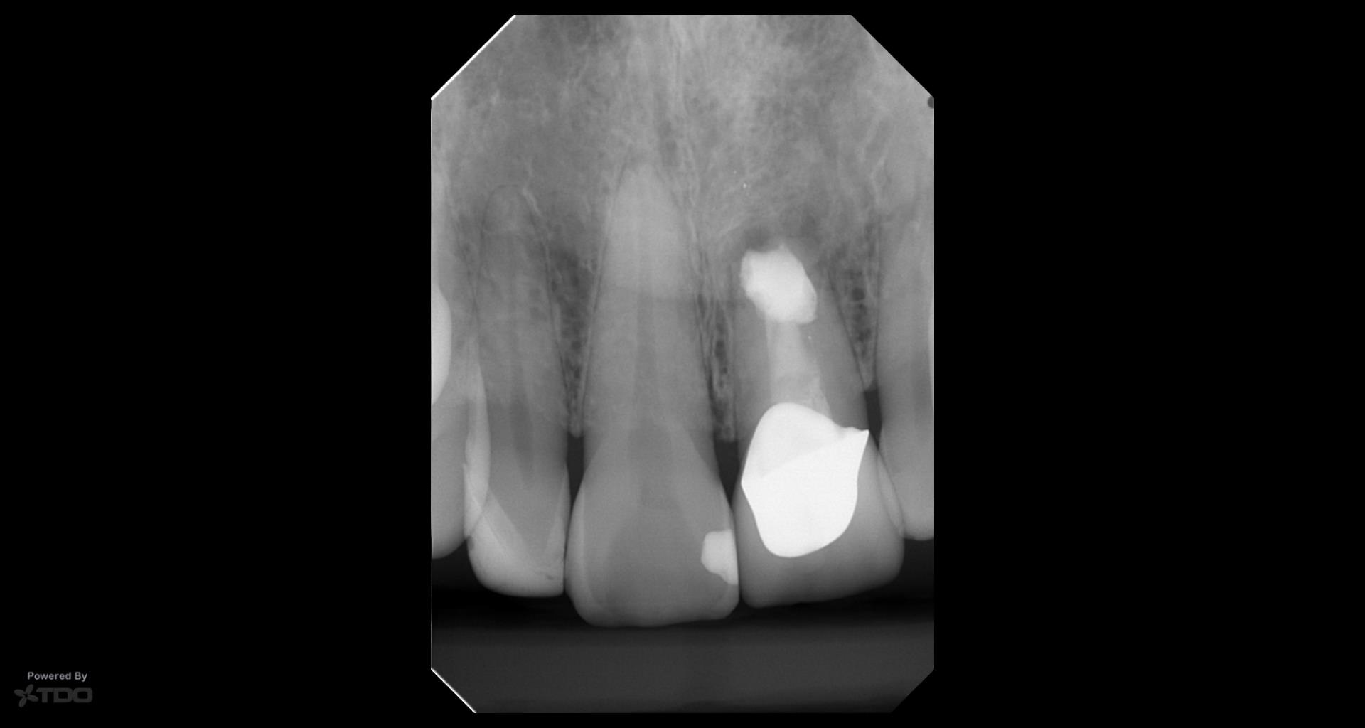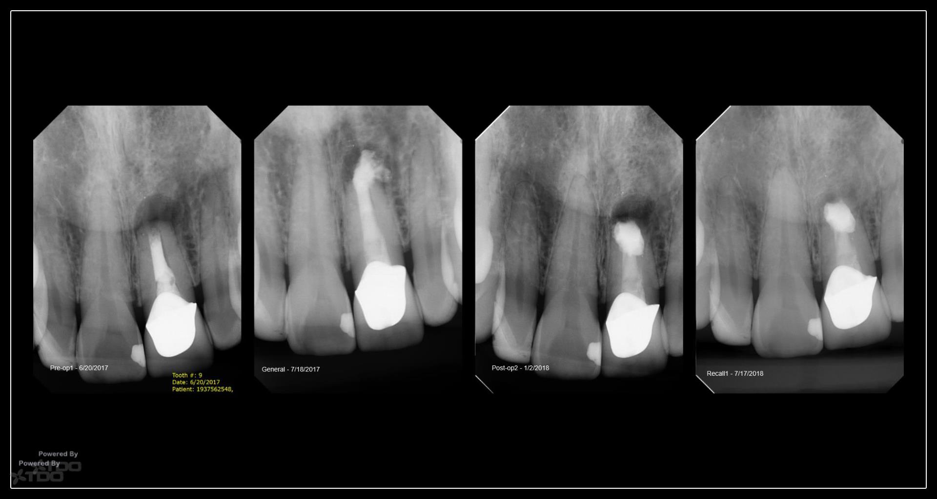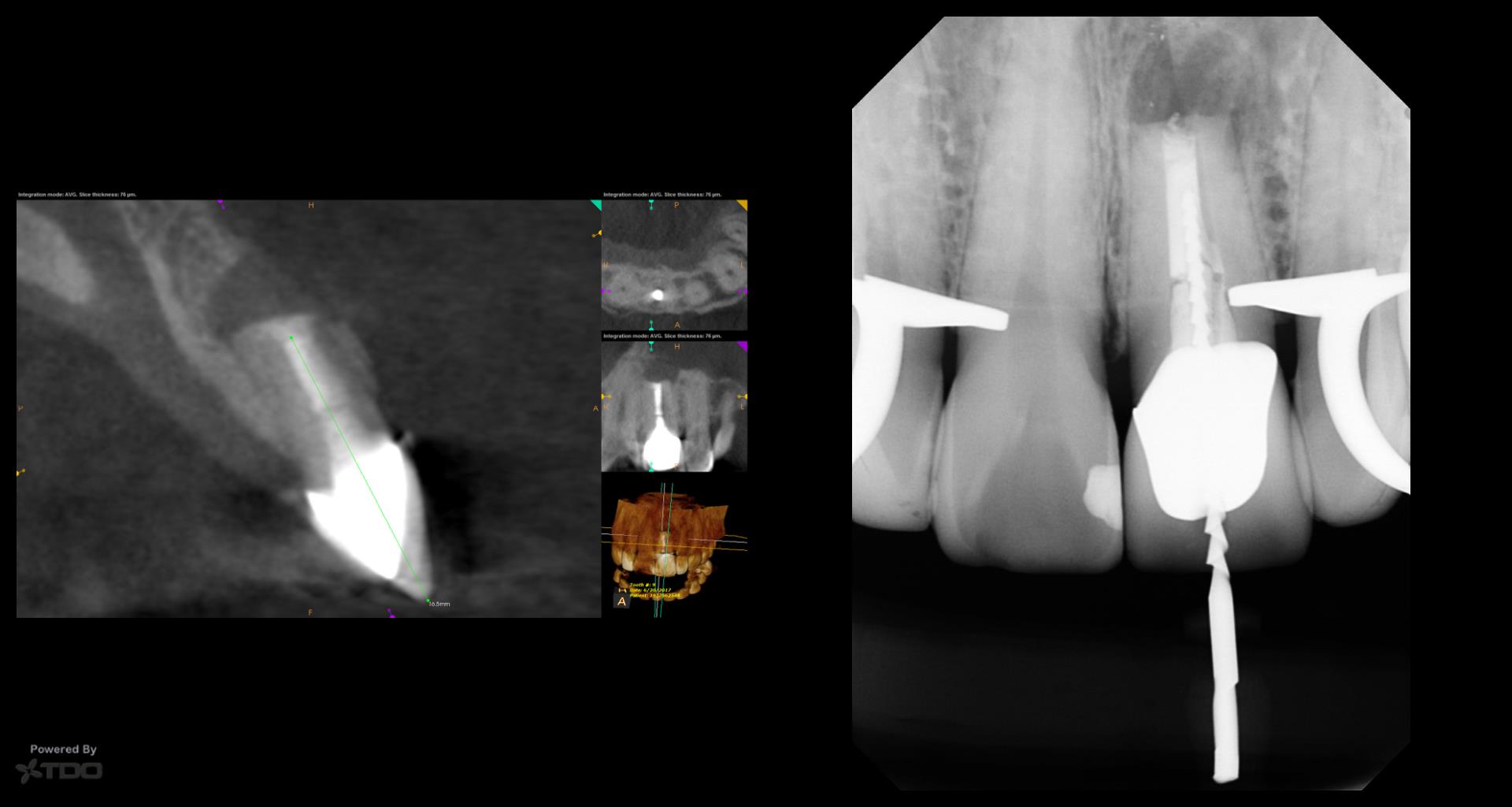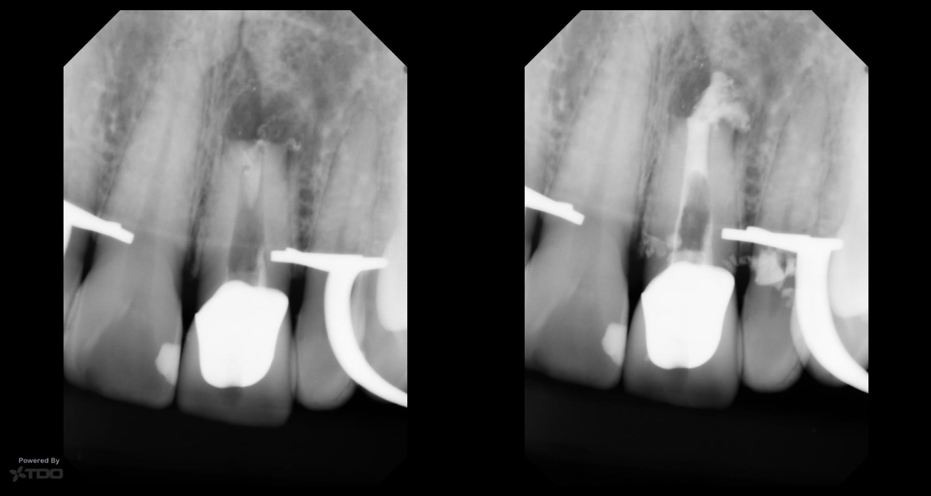 This was interesting because a root frac ture was seen where the prior apico was done. The MTAS was removed and Brassler putty used in this case. Will take a 1 yr CBCT and we will know more. Don’t usually get so much scar formation–so this was surprising…..