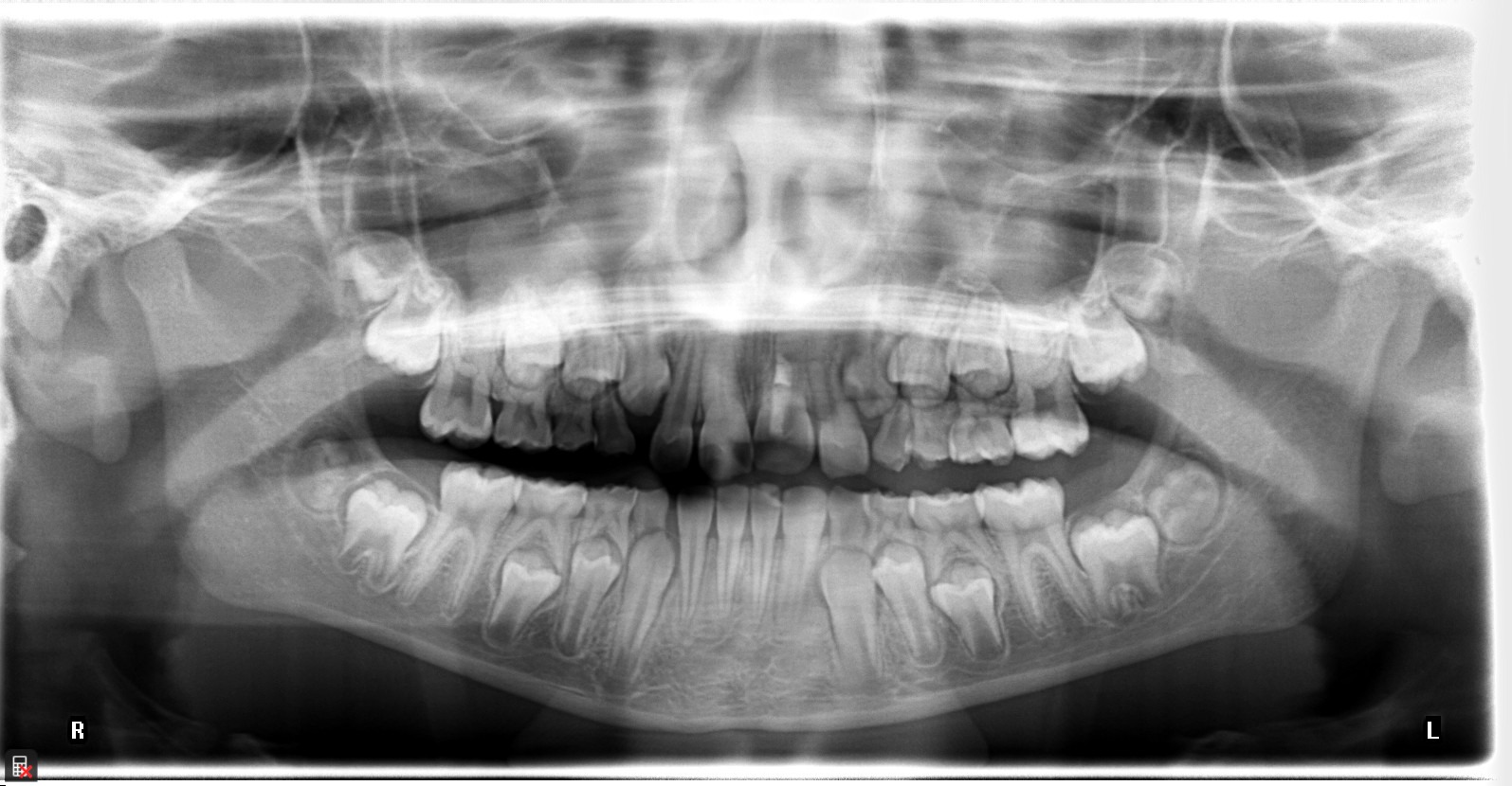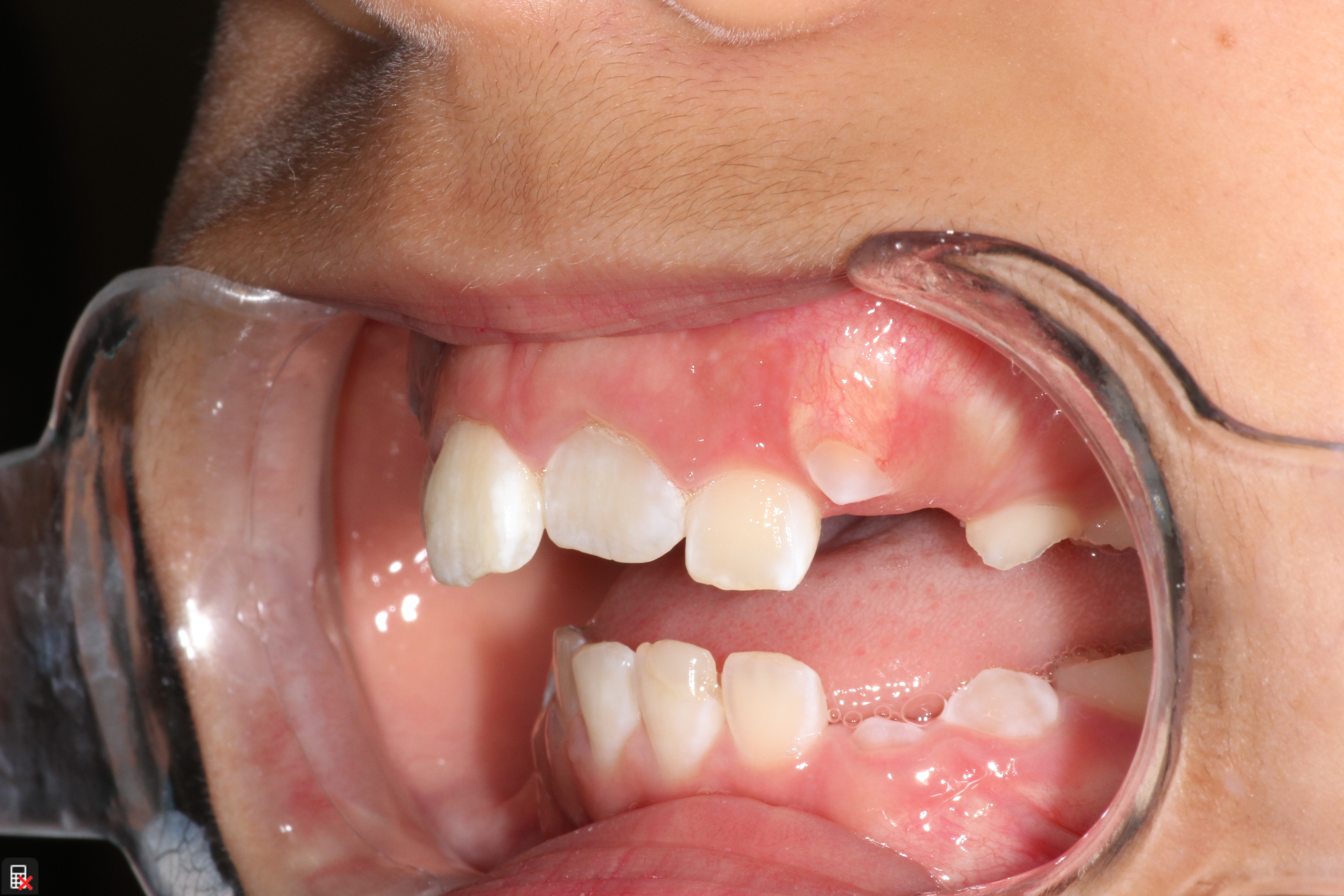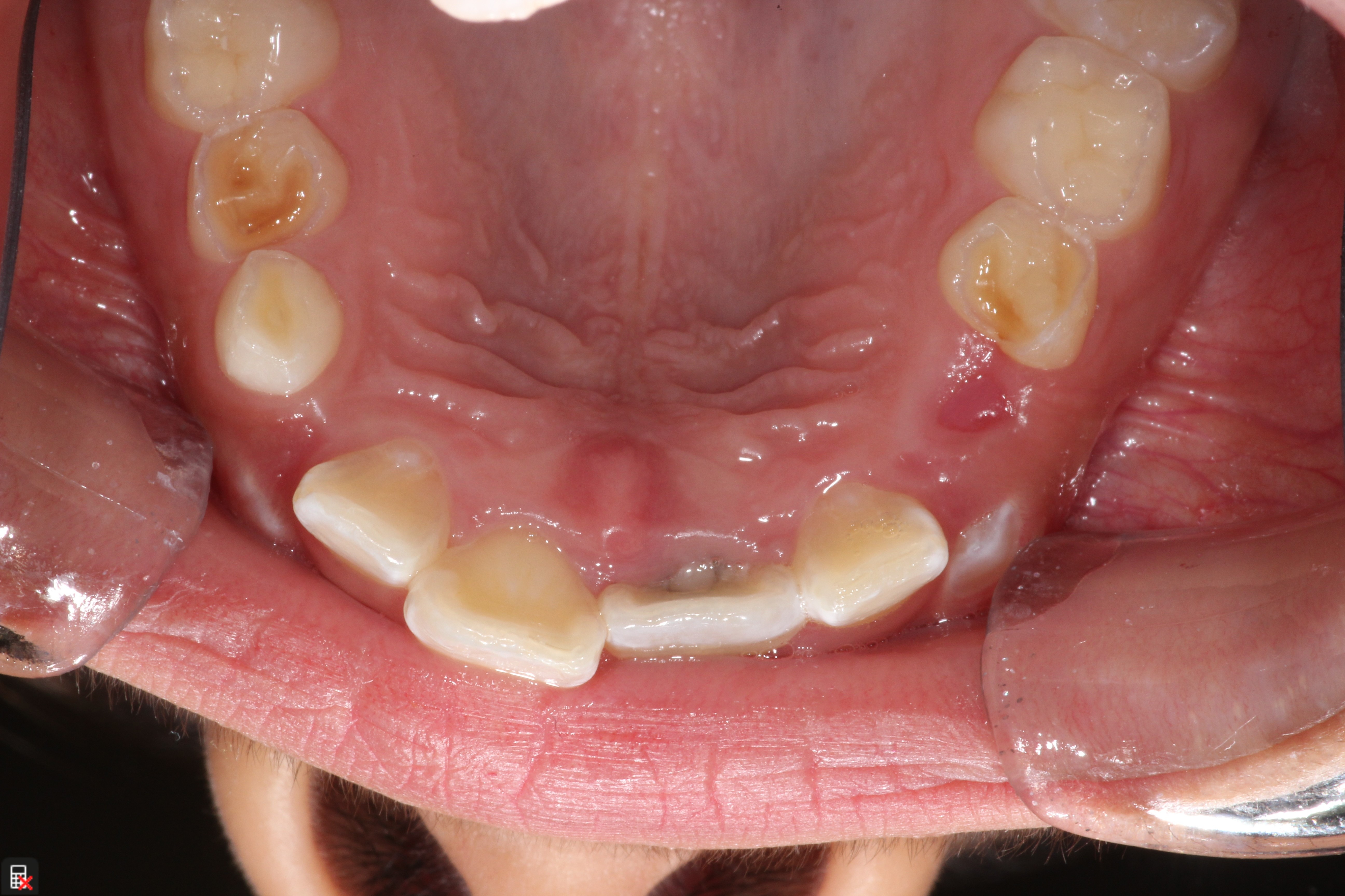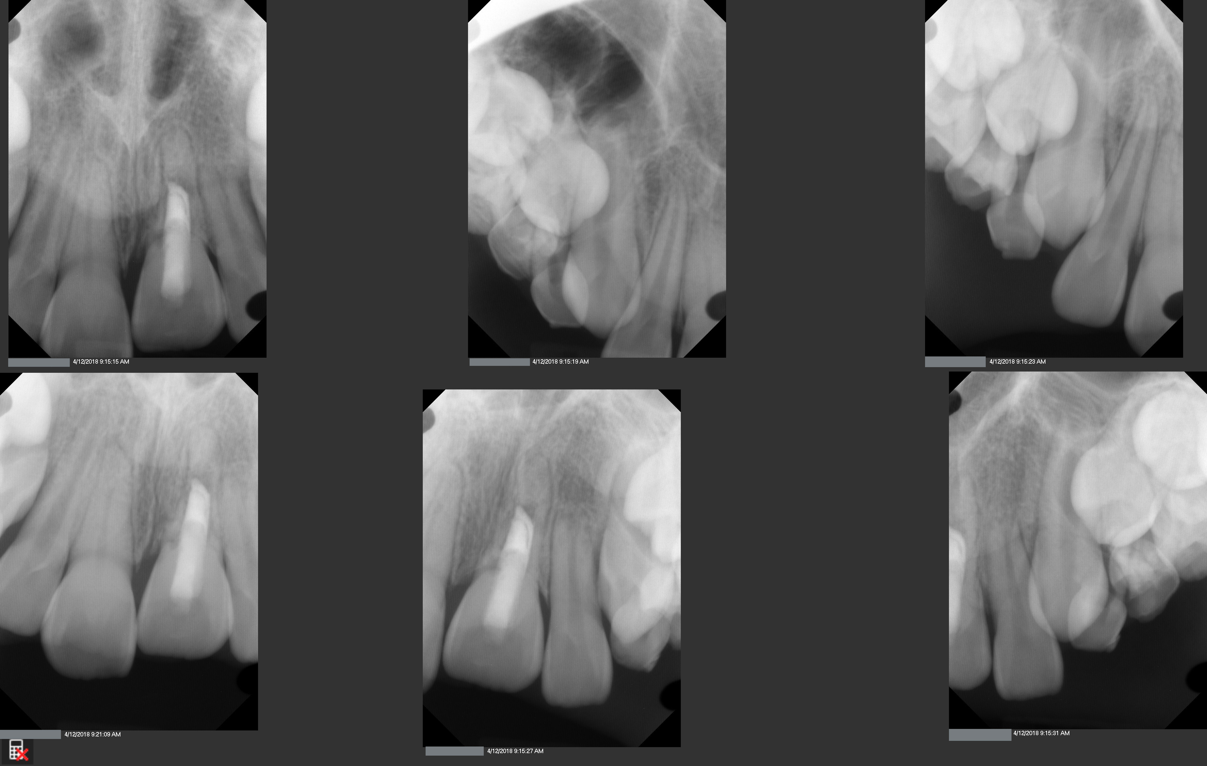 This is a 9yo girl with a high esthetic desire (wants to be a model/actor). She avulsed tooth #9 about 3 years ago, and she has been under treatment with other endodontists. I guess they attempted revascularization with MTA about year ago. #9 is ankylotic with a few mm’s infraposition. It is gray due to the MTA. #8 is slightly yellow/white due to calcification/obliteration but she says she feels cold testing and it is otherwise asymptomatic.