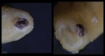 When a biofilm attaches to root cementum, it can undergo a calcification process very similar to what occurs with a Sialolith. A Sialolith is a calcified biofilm. These accretions are calcified biofilms. They’re calcified masses of microorganisms. On TDO, we have looked carefully over the years at these root accretions because they play a role in endodontic failure. They are not usually seen until the tooth is extracted or at the time of surgery. Jk calls them “gnarr”. So we have done a lot of electreon microscope studies of gnarr in my lab—and they are all biofilms. Peridontists scrape them off and call them something else….. In the posted case, what did I have to lose? I saw in the final radiograph there was a large lateral right to the point where the GP sinus tract tracing went. I was thinking that maybe I didn’t get it good enough and maybe a lateral root prep might work. But when I removed the gnarr with a CT-4, I could see 2 large lateral canals with GP. I just burnished them down. And the sinus tract never retruned.
