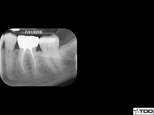 From last week. 59yof. SIP. Hyperemic. 6 canals. 2 visits. Asymptomatic at the second visit. Asymptomatic and functional at the follow-up appointment.