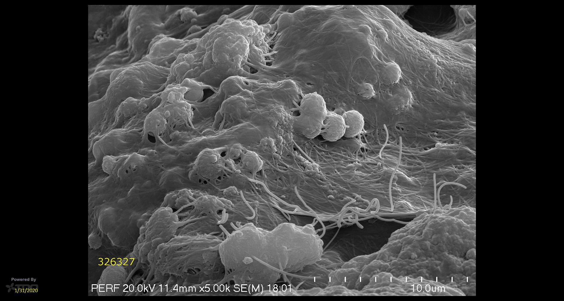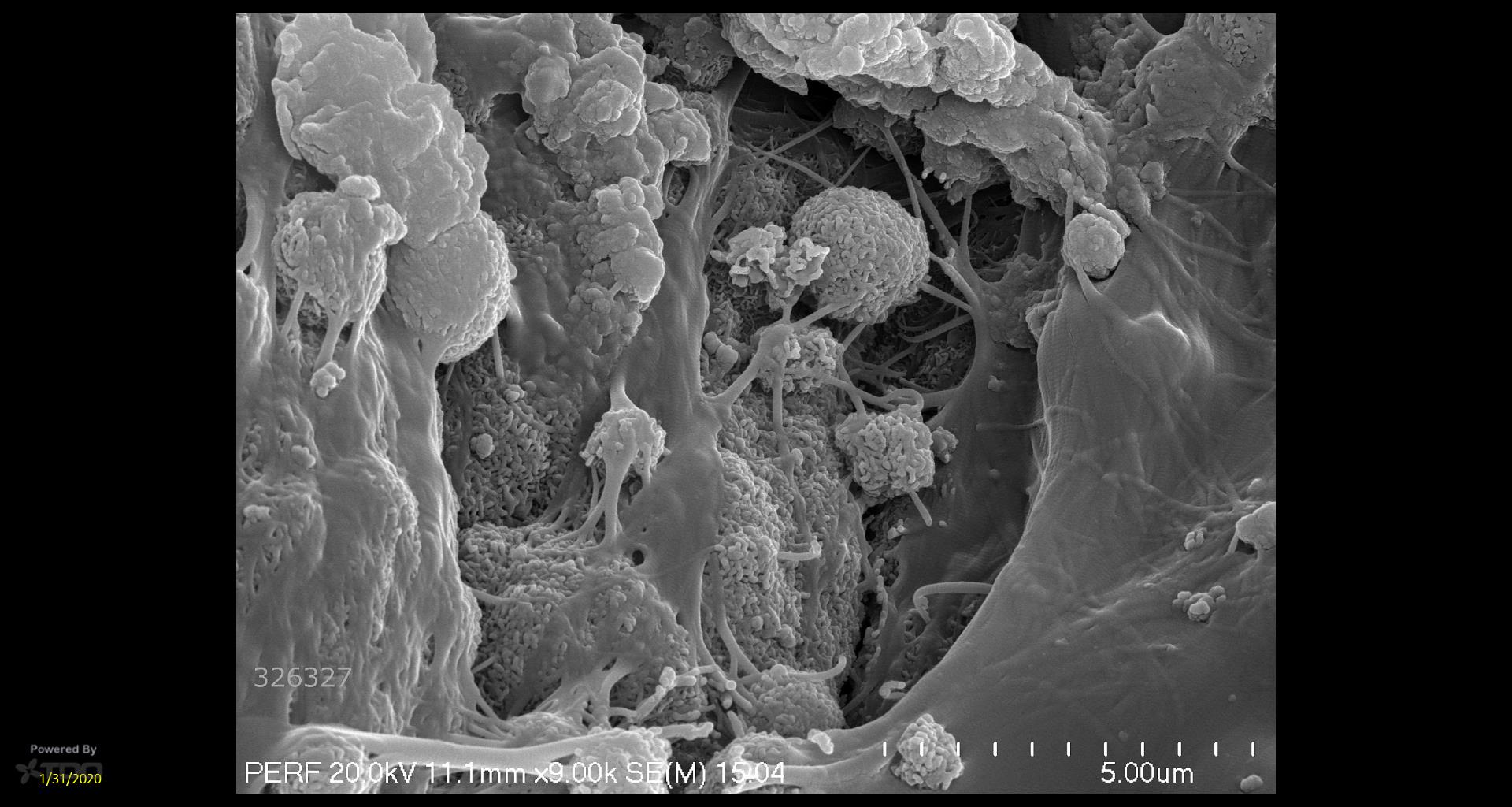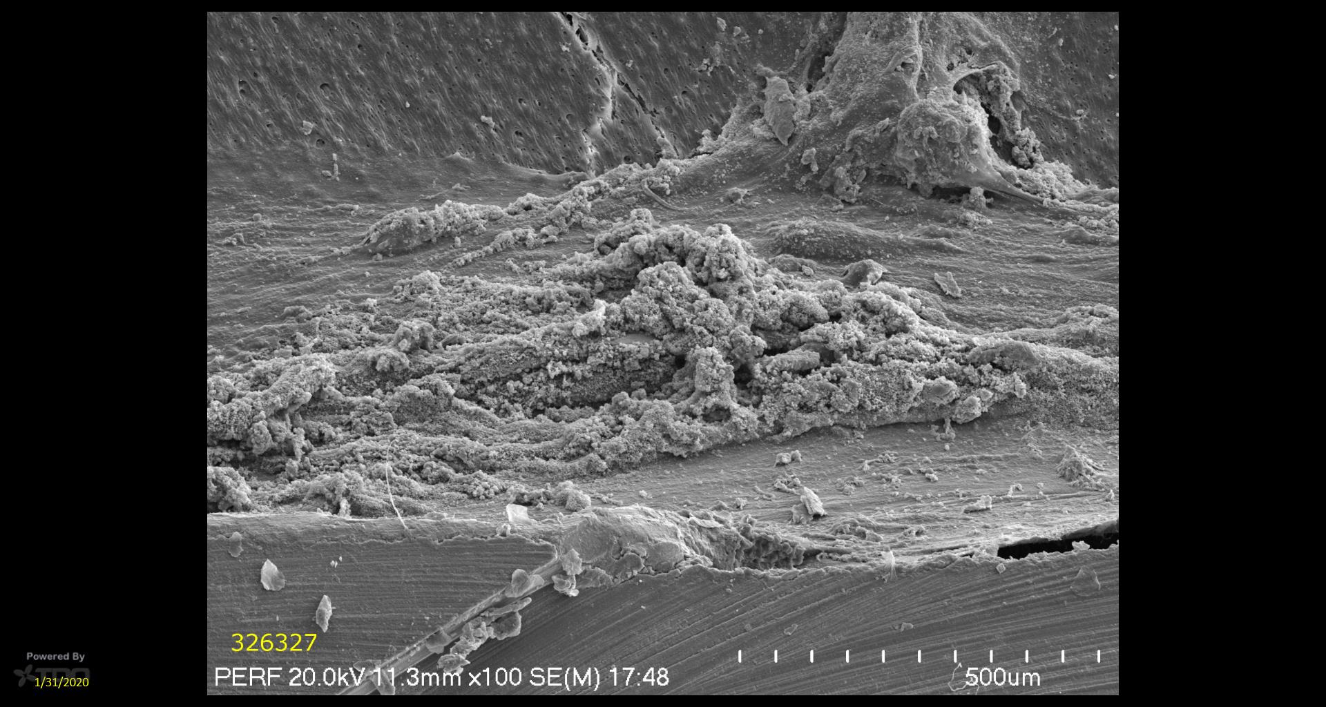The image shows a dense biofilm after 4 months firmly attached to the channel wall, papa louie games, indicating a strong level of microbial growth.