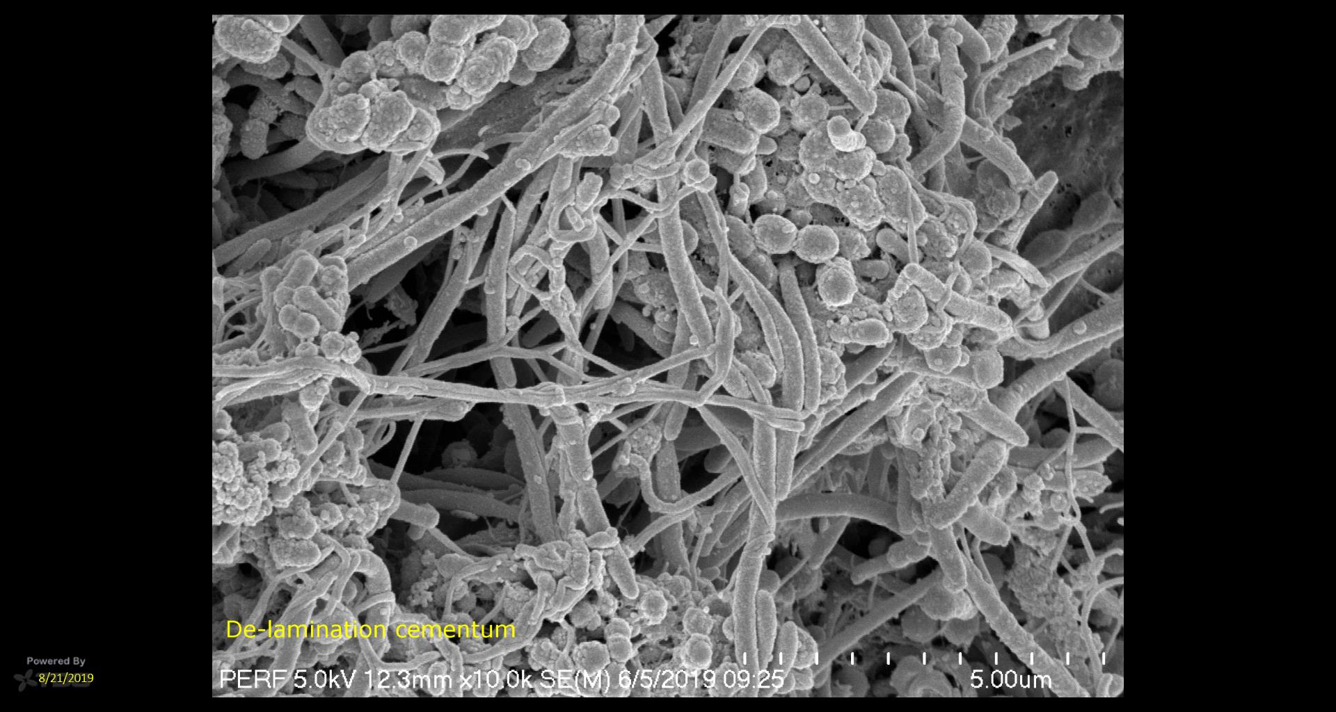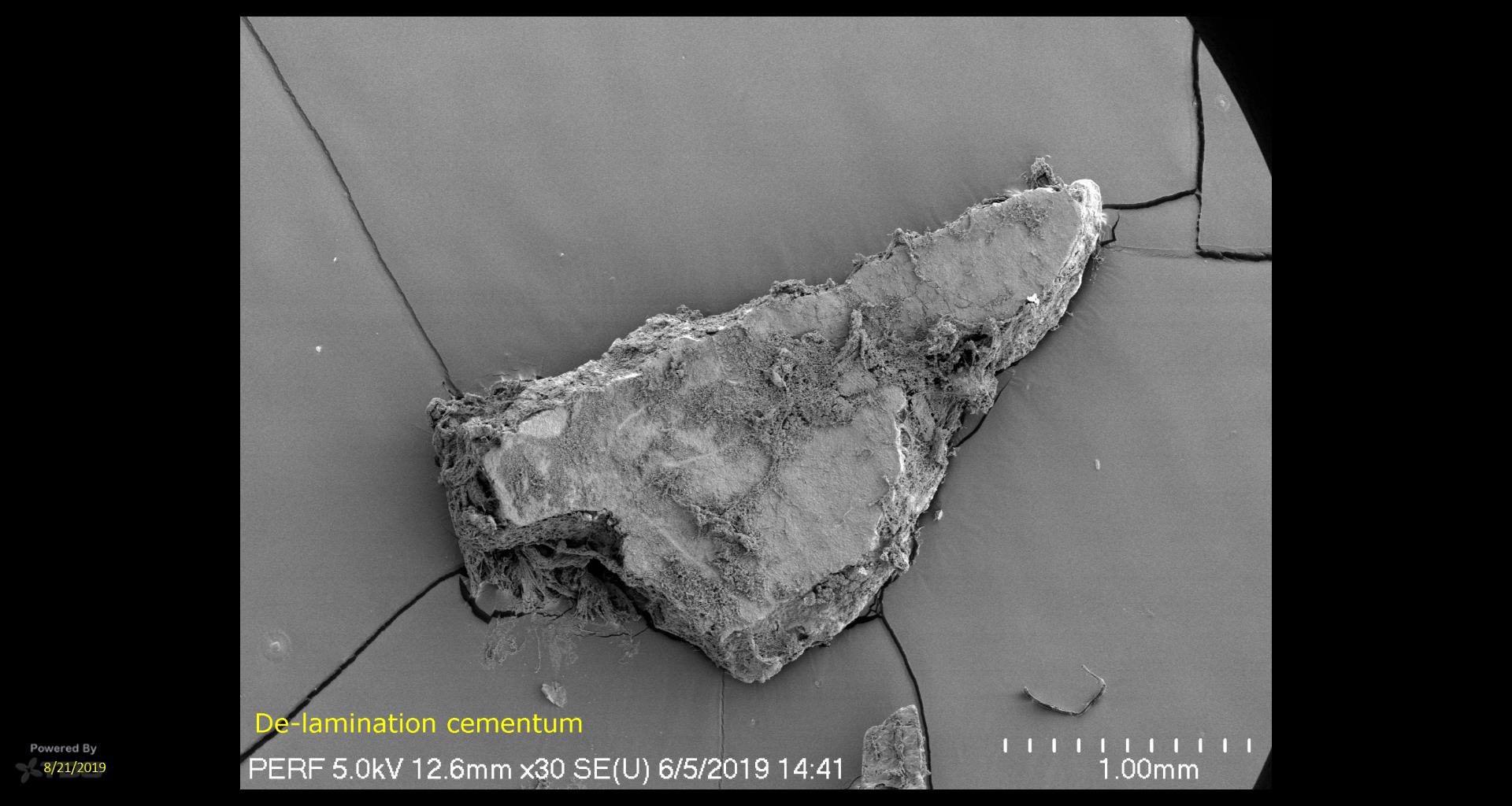 Every so ofter when TDO’ers come across delaminated cementum, they will send me it for analysis. This is one Push-A-Pak sent. Kind of interesting…and one reason maybe why CaOH can’t solve this problem…. gbc