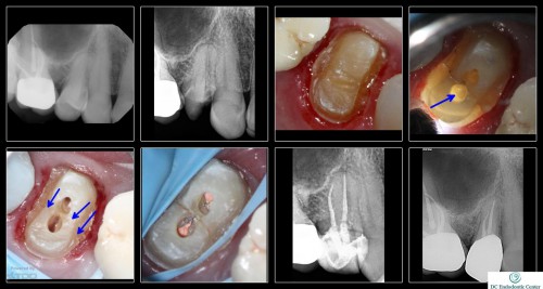 I wanted to post this interesting case. She is the sister of an endodontist colleague( no pressure) who arrived in my office with a temp crown and in severe pain. As soon as I took a look, I realized the tooth had a bad MD vertical fracture with no probings or mobility but would likely need extraction. I opened the tooth and decided to do a dual access to remove the least amount of tooth structure in the most vulnerable spot, right where the fracture was running. My thought was, I would loose nothing in pushing the envelope. She returned 4 weeks later and was completely asymptomatic and able to bite and chew so she really wanted to give it a try. After I completed the case (04/ 20 preps on both canals) the tooth was on and off acting up. With the GD, we finally agreed to extract it. The patient says after that appointment, the tooth never bothered her again. The final X-ray is an 18 month follow up. Tooth is completely asymptomatic and fully functional.
