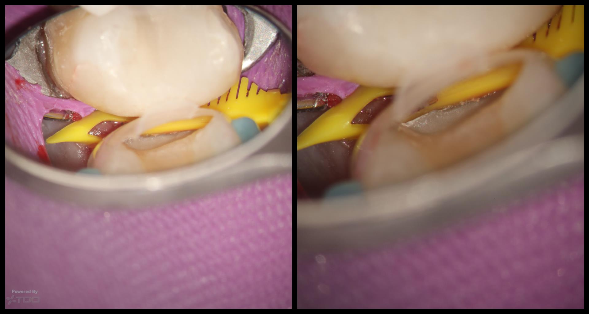 My hat is off to Dr. Ho and Dr. Dale who are doing this really well. Myself? Not too great….but I will get better….. There was caries under the DO on #13. So I tried a Clark Class 2, injected molded restoration. Took 2 hrs! I just can’t imagine doing this without a scope. Or for that matter, without an assistant’s scope. gbc