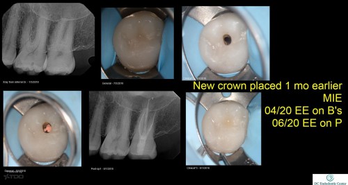 Pt developed acute pulpitis 1 months after the new crown was cemented. He arrived with typical SIP/SAP.