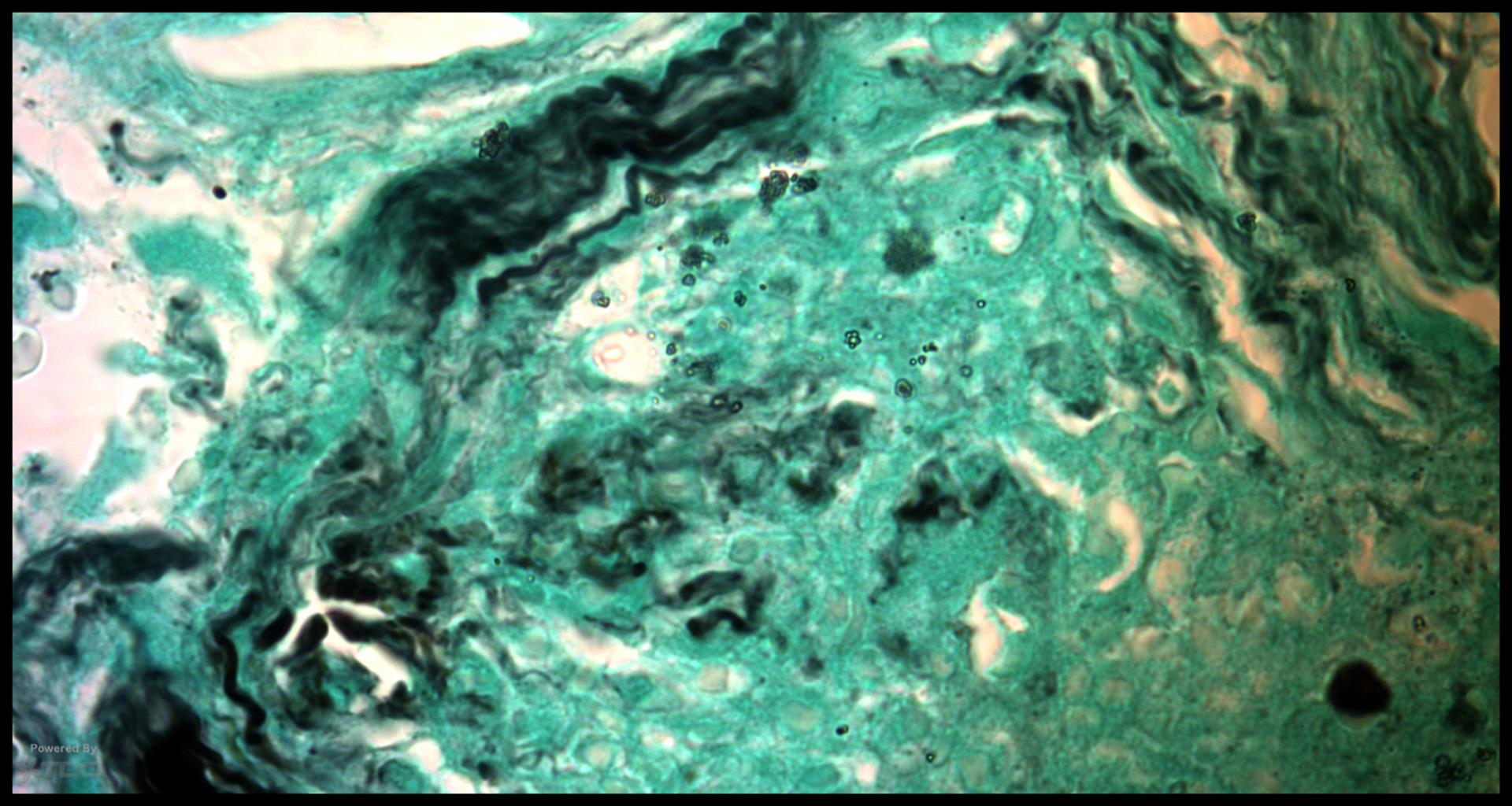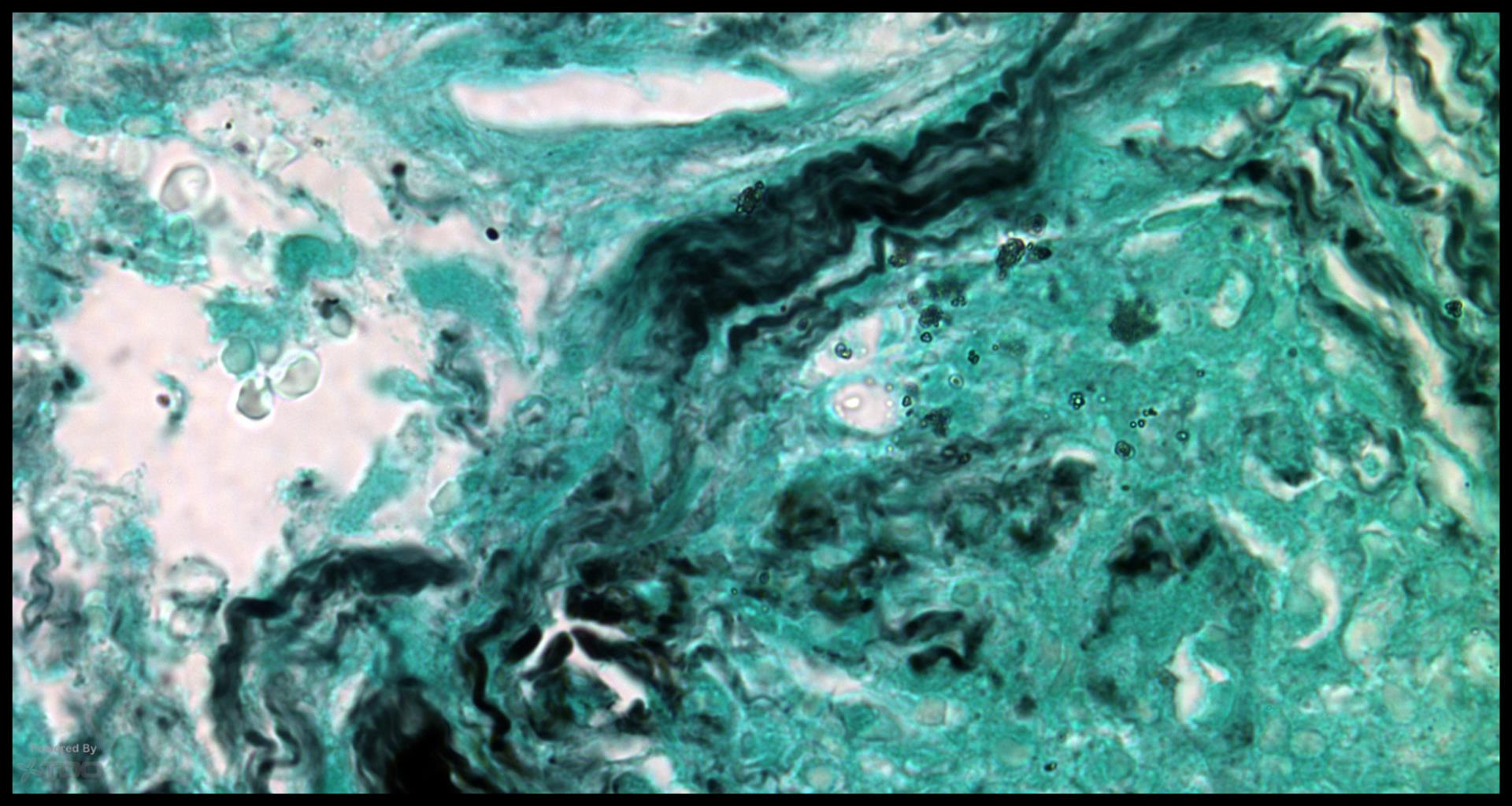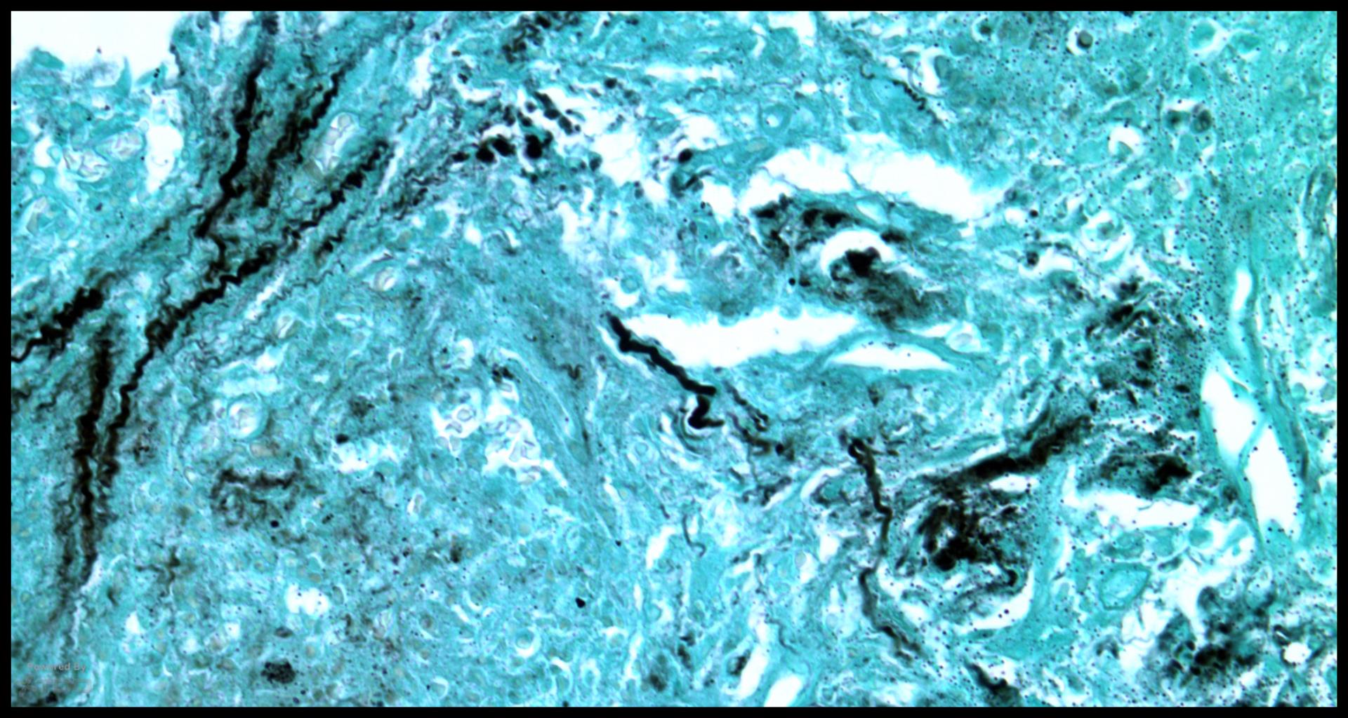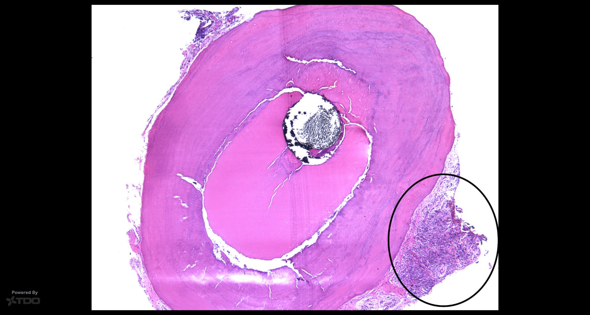 Older TDO’ers may remember this case that Rick sent me in 2012 from a surgery he did.. There was some bacterial morphotypes seen along the canal wall, but not very much. But on the outer root surface there was a lot of inflammation and a fungal stain suggests why…. gbc