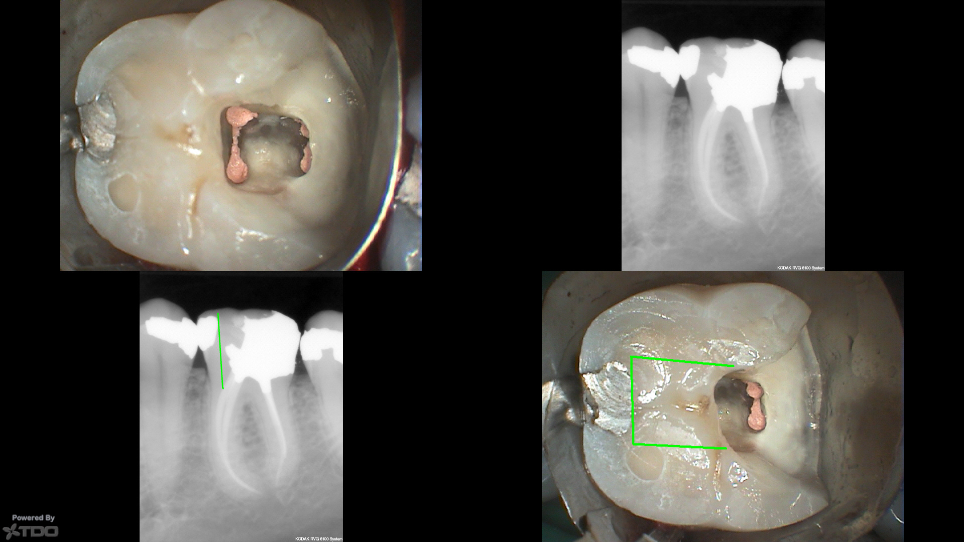 This patient was in yesterday for a different tooth, and we can see the pulp horn to the mesial along with drawings showing traditional SLA and how much tooth structure might have been left.