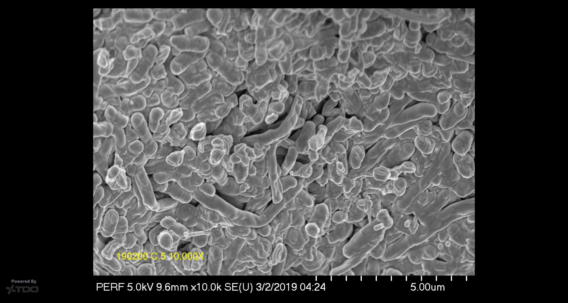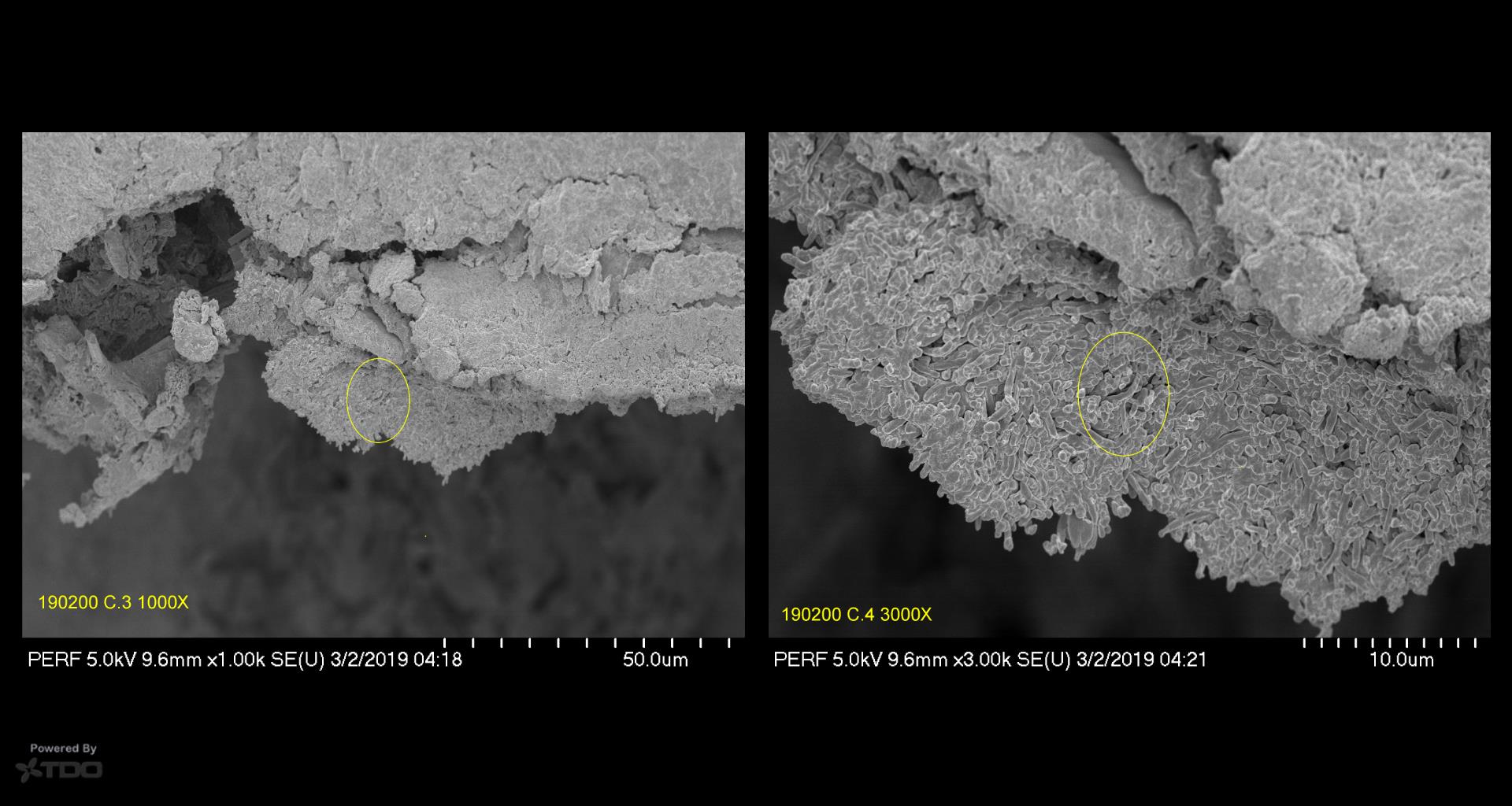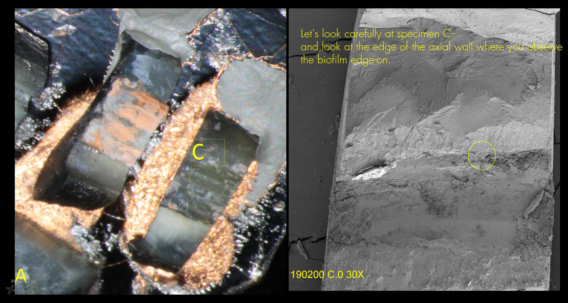 If we look at the cut section along the edge of the calal so we observe the biofilm edge-on—you can see how these layers are constructed.
